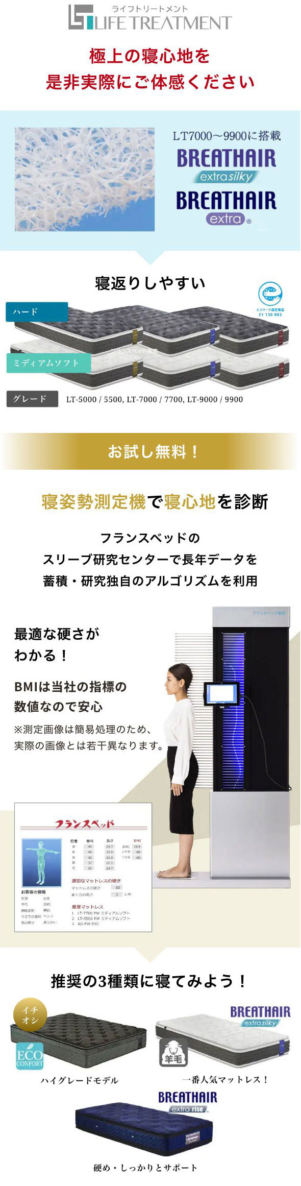 お客様に合った寝具を診断します